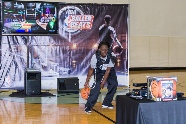 This game indeed has money behind it. Otherwise, Majesco couldn’t afford the talents of NBA legend and TV analyst Kenny Smith to work as the game’s spokesperson or WNBA’s eloquent Essence Carson, a member of the New York Liberty (and recording artist) who demoed the music-based rhythm game last Tuesday in New York City. “When they showed it to me, I got the idea immediately,” said Carson. “It definitely raises a sweat, just like Dance, Dance Revolution. I loved that game.”